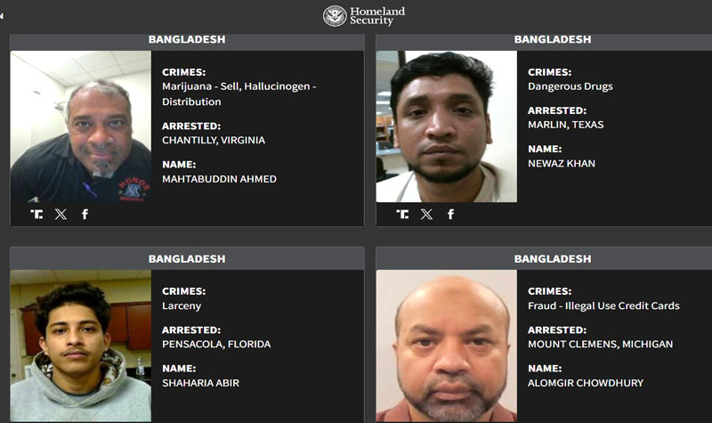 Noman Sabit: The U.S. Department of Homeland Security (DHS) has detailed how 10 Bangladeshi nationals ended up on a list of what it described as the “worst of the worst” criminal offenders. The agency highlighted individuals arrested by U.S. Immigration and Customs Enforcement (ICE), noting that the list includes 10 Bangladeshis among those categorized as the most serious offenders.