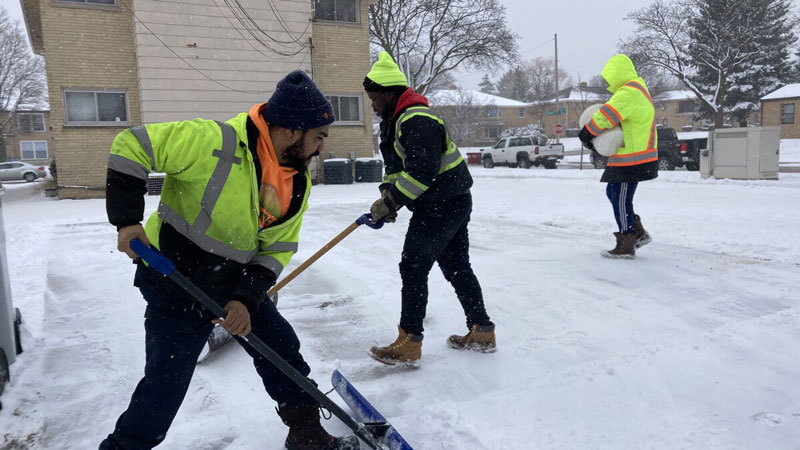 As of Tuesday, 1,800 people were signed up for the temporary work this winter season, and a peak of 550 were out shoveling bus stops, crosswalks and other public areas since the Jan. 25-26 storm that continues to delay trash pickup and many other city services, a City Hall source said.